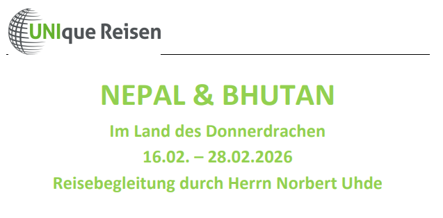 Die Serie der Studienreisen der Volkshochschule (VHS) Gifhorn/Goslar/Salzgitter setzt sich fort. Nachdem zuletzt im November vergangenen Jahres Kuba und im März Sri Lanka die Ziele waren, sollen Anfang 2026 Nepal, das „Land des Donnerdrachens“, und Bhutan besucht werden – konkret vom 16. bis 28. Februar. Buchungen werden ab sofort entgegengenommen.