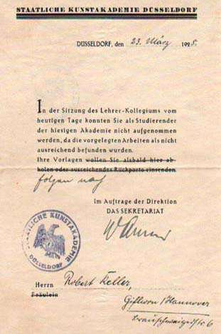 Das hart erkämpfte Studium von Robert Heller verlief nicht ohne Hindernisse. Nachdem er mehrere Semester an der Technischen Hochschule und an der Städtischen Handwerker- und Kunstgewerbeschule in Braunschweig studiert hatte, bewarb er sich bei verschiedenen Akademien um einen Studienplatz. Er musste aber erleben dass er mehrmals abgelehnt wurde. Letztendlich wurde er 1928 an der Staatlichen Kunstakademie in Königsberg aufgenommen. Von dort wechselte er 1929 an die Staatliche Akademie für Kunst und Kunstgewerbe nach Breslau, um bei dem „Brücke-Maler“ Otto Müller zu studieren. Nach Müllers Tod 1930 beendete Heller sein akademisches Studium frühzeitig.