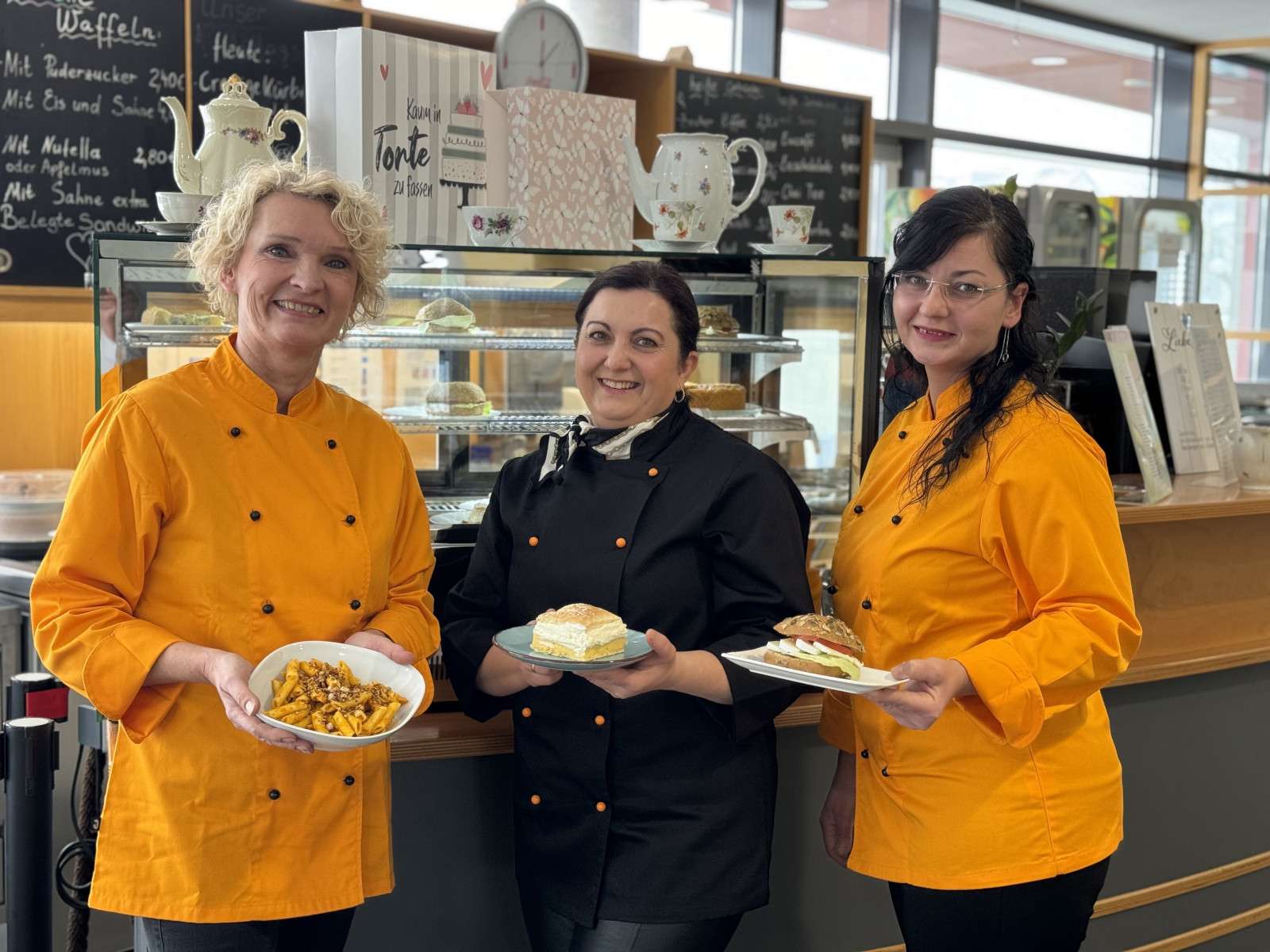 Wir bieten Ihnen heiße und kalte Getränke sowie frisch belegte Brötchen und selbstgebackenen Kuchen an. Mittags haben wir wechselnde Salate, Bowls oder Suppen im Angebot.
